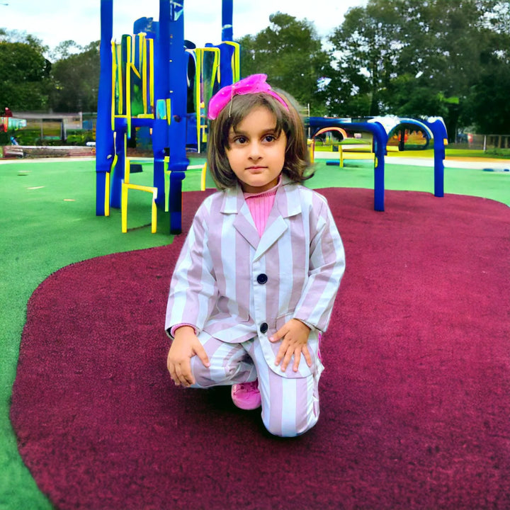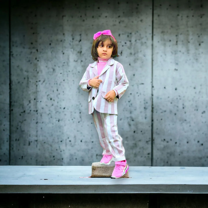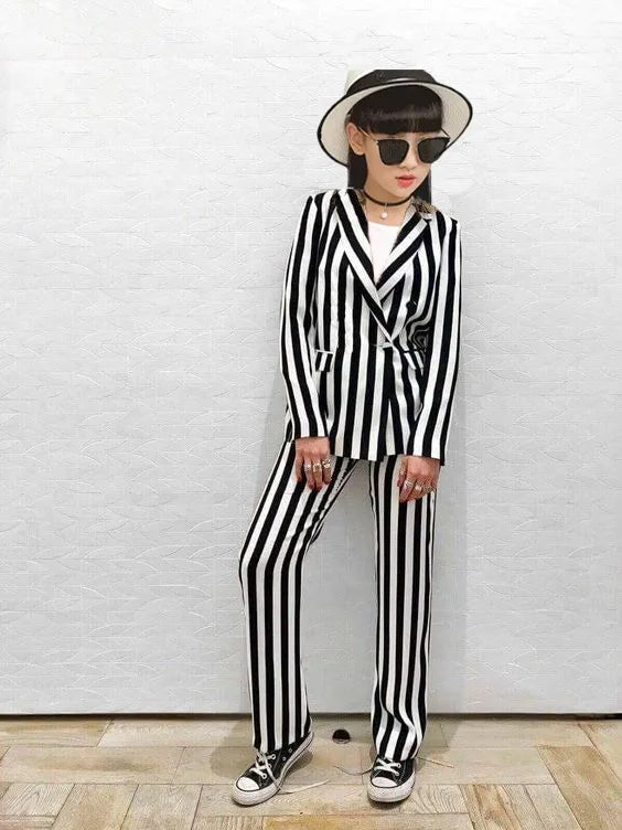 6052 2pcs coat+pent with long sleeve strip dress for girls and boys