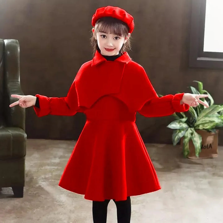 6063 3pcs woolen dress frock+jacket+cap winter dress for girls