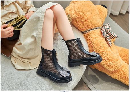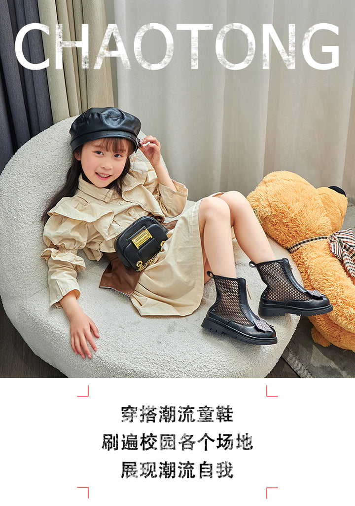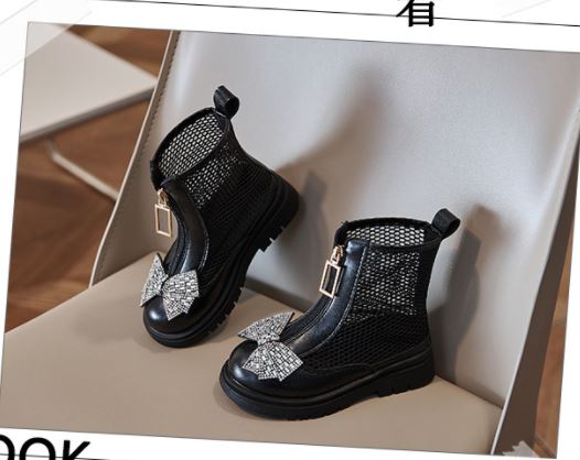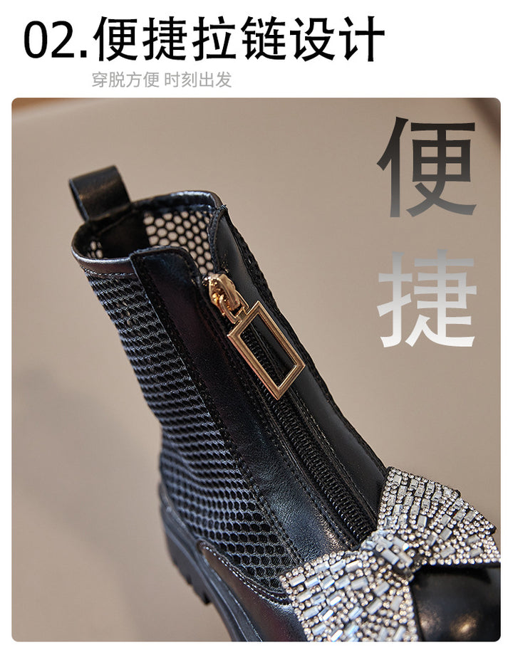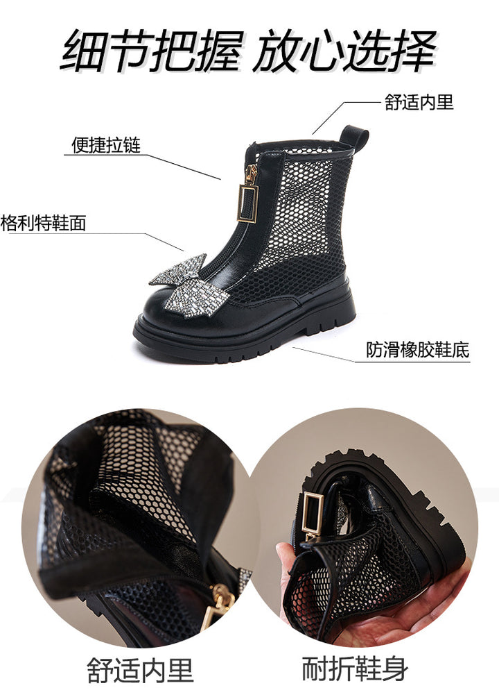 Baby shoes rhinestone bow style mesh breathable zipper shoes for girls