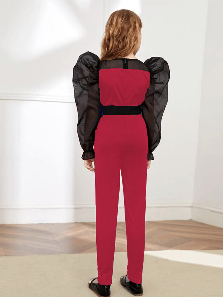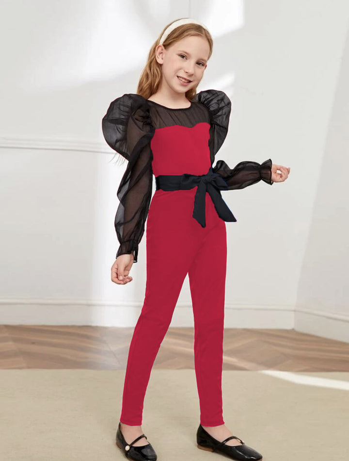 Fake jumpsuit with belt summer dress top with black mesh bottom blended cotton