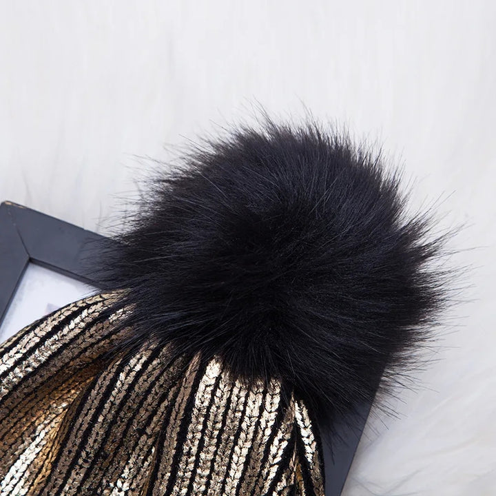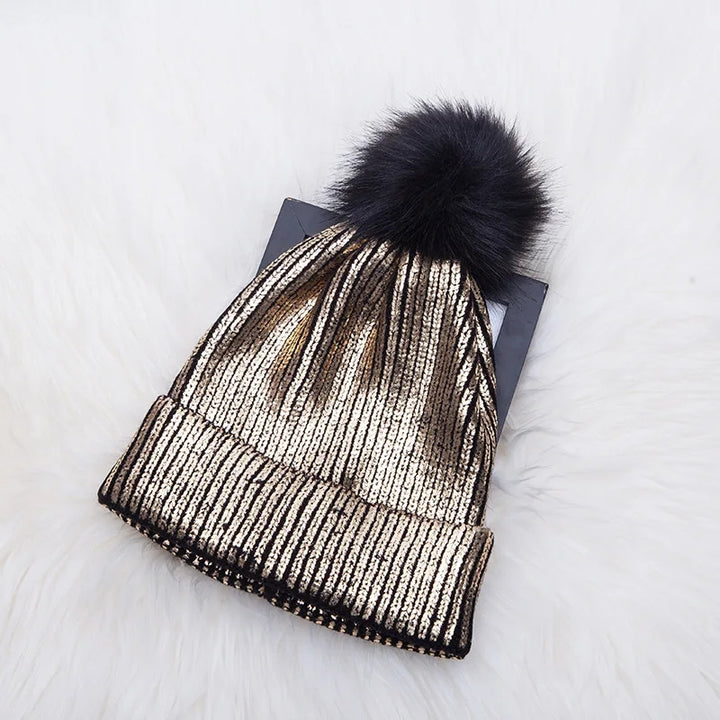 4314 Baby caps beanie hat metal colour pompom warm cap for boys and girls