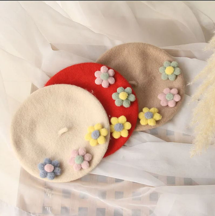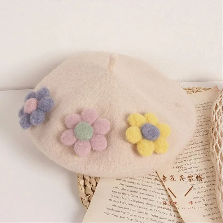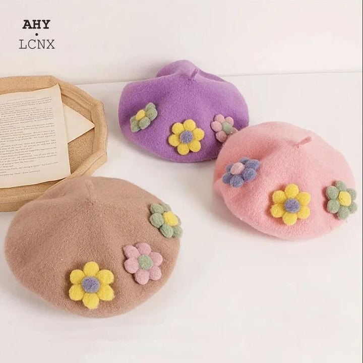 Baby clothes Pakistan tricolor flower wool warm cap for girls