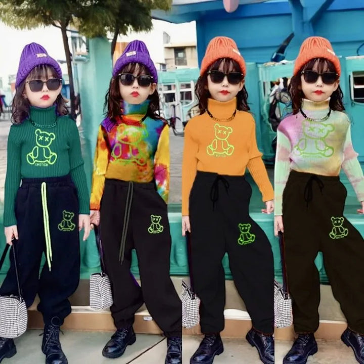 6112 Cartoon print full sleeve shirt with trouser 2 pcs dress girls and boys