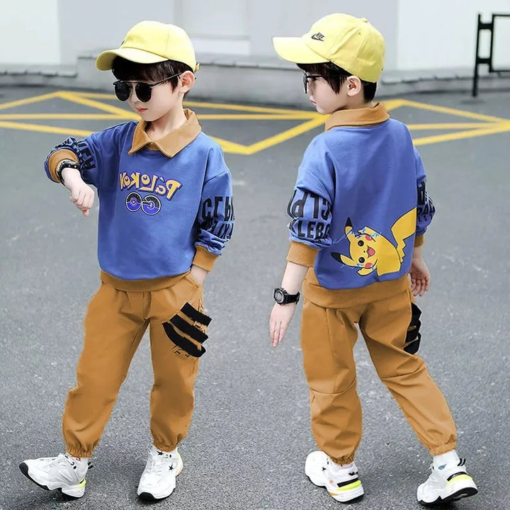 5085 CASUAL STYLE POKEMON PRINT STYLE SHIRT +TROUSER WINTER DRESS FOR BOYS