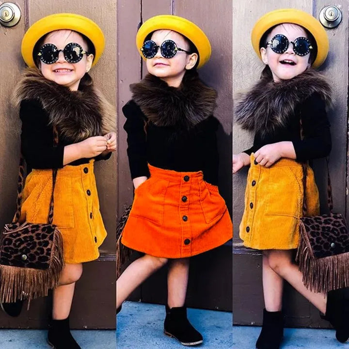 6122 Fur collar hoolow sweater + open pocket skirt dress girls