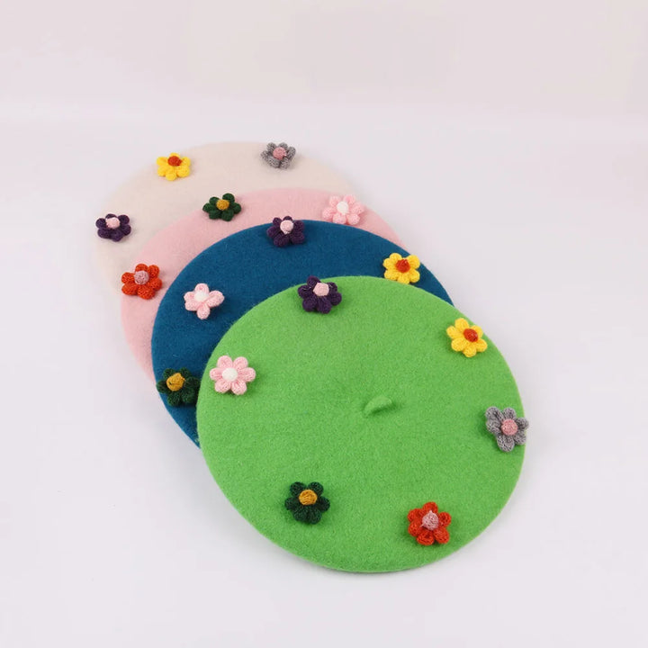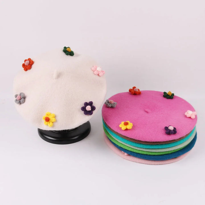 4340 Infant caps wool flower winter warm japanese style cap for girls