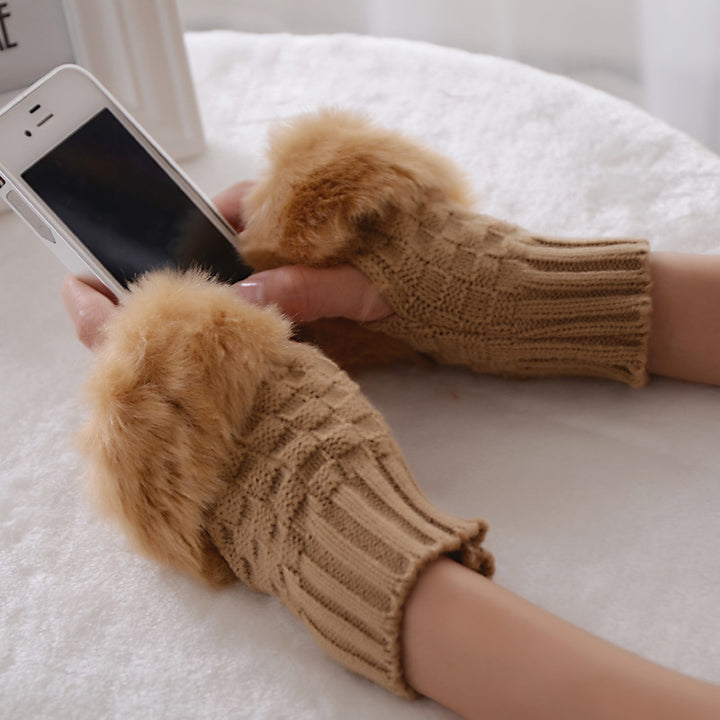 Kids clothes rabbit hair gloves fur warm for girls