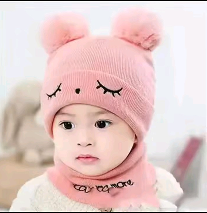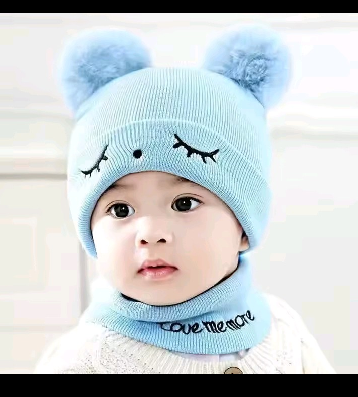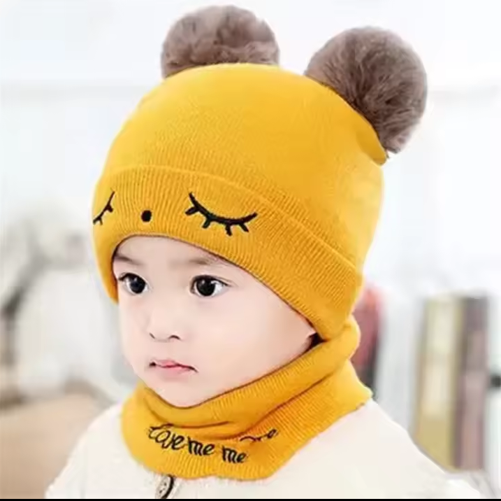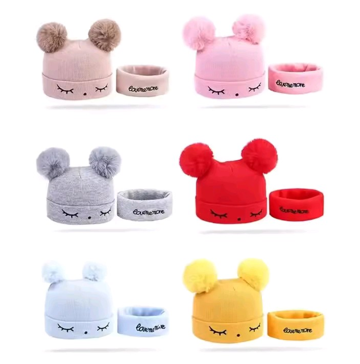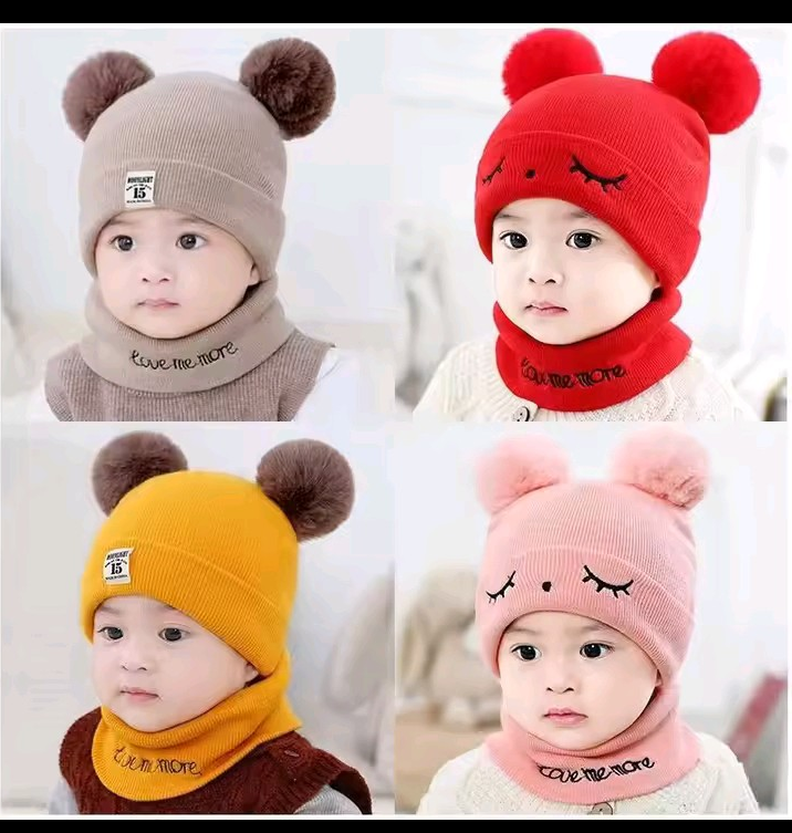4317 Kids clothing brands printed soft winter cap with neck scarf for boys and girls