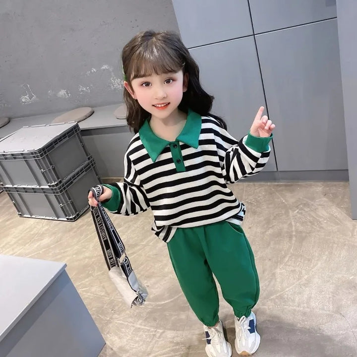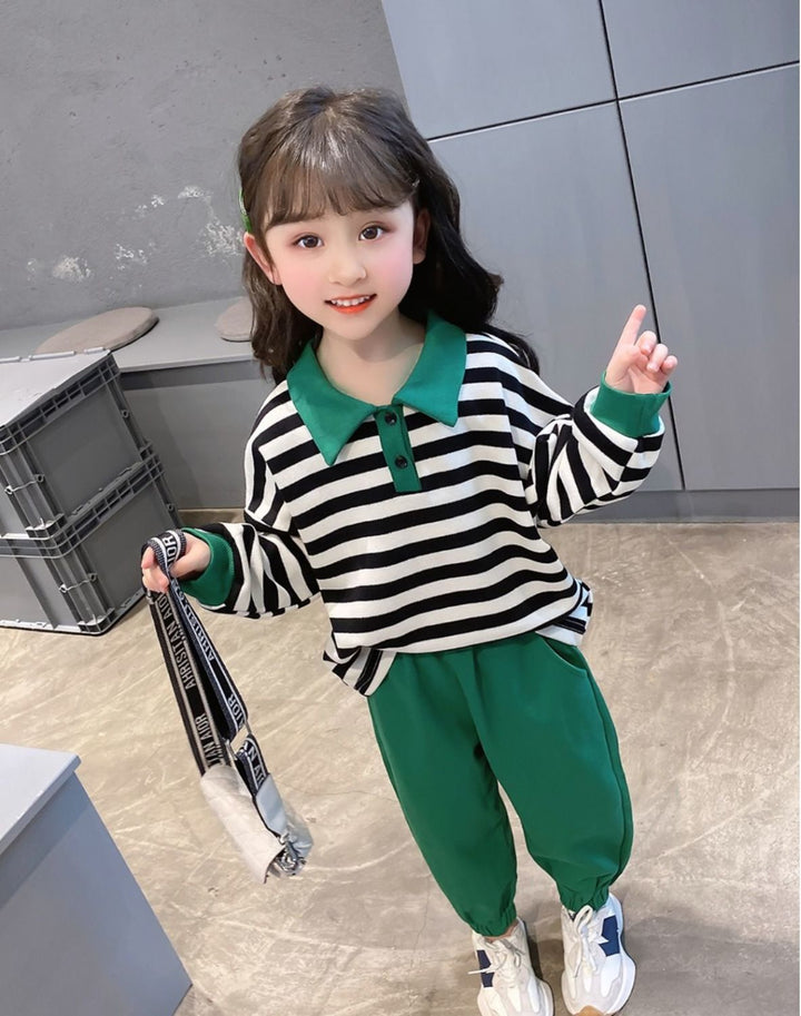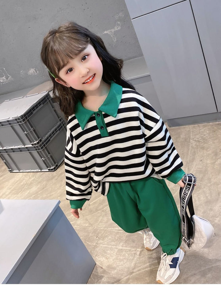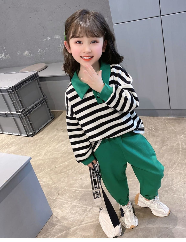 4439 kids clothing brands striped fashion sweater+trouser 2pcs dress for girls