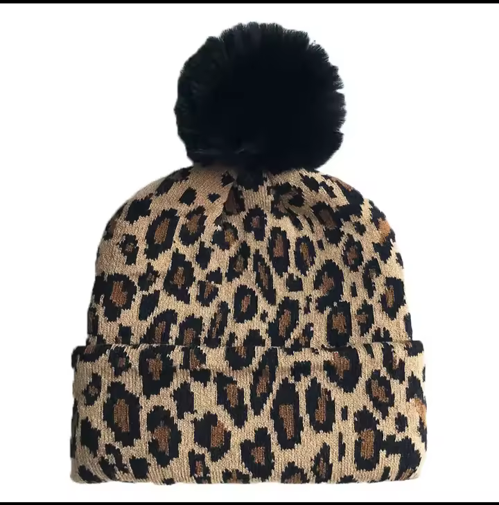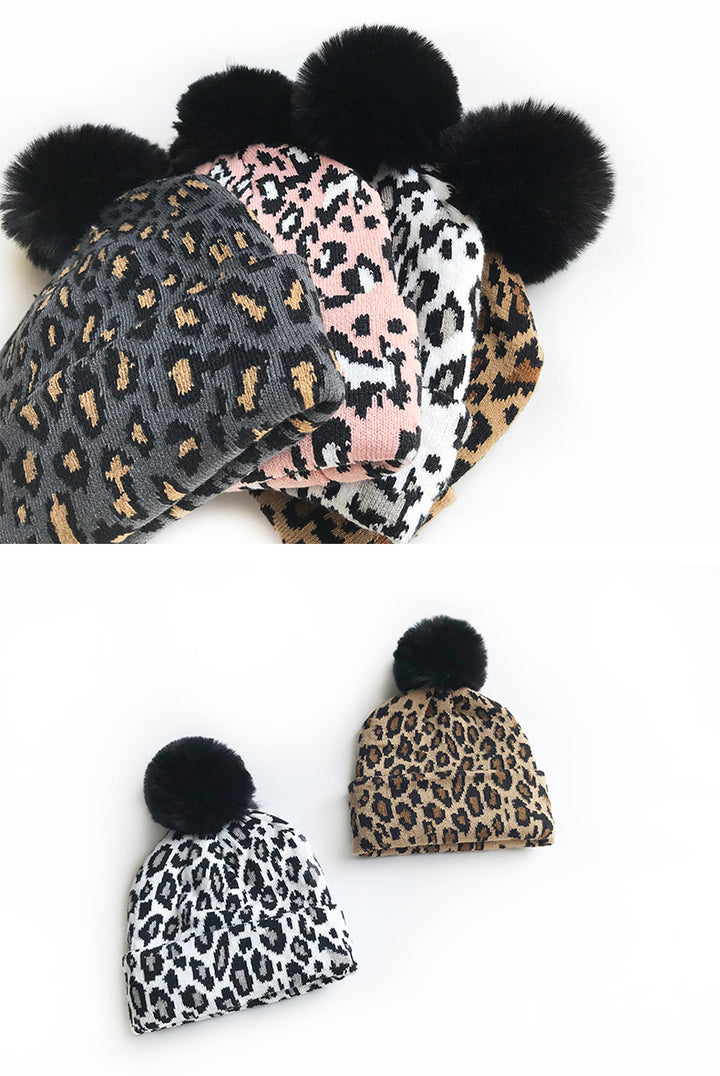 4337 Kids fashion leopard print soft warm cap for boys and girls