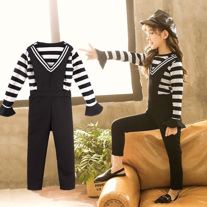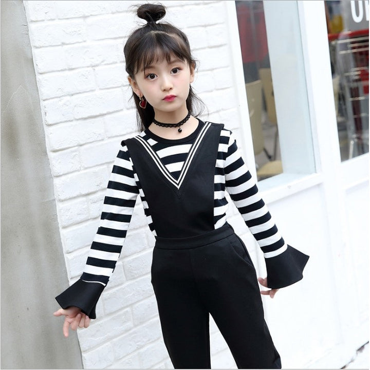 4399 Kids fashion Pakistan jumpsuit style striped shirt and pant dress for girls