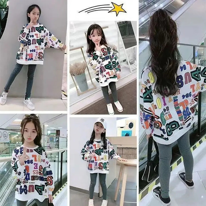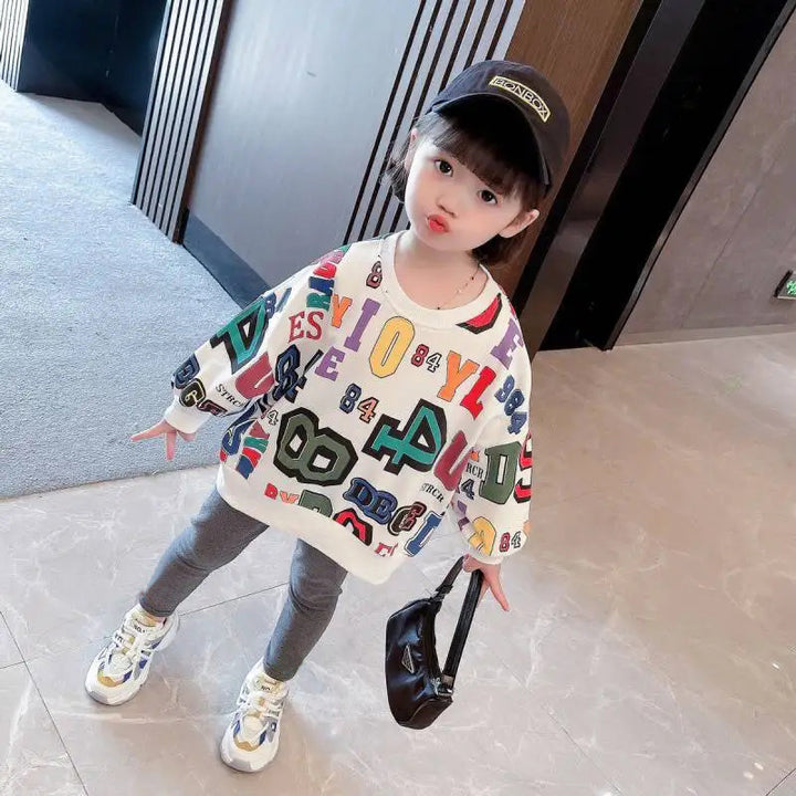 Sweatshirt round neck long sleeve with trouser dress for girls