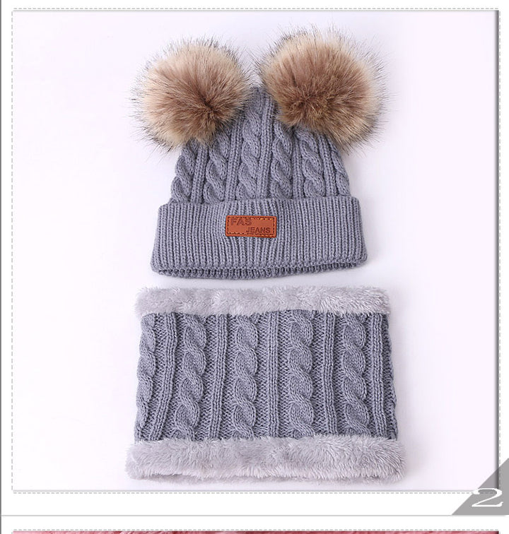 Two pieces wool cao+scarf set for boys and girls