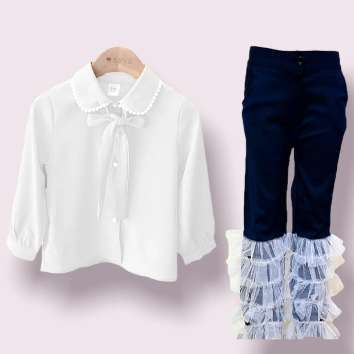 5064 Western Style Pearl Collar Style Shirt With 5 Layers Of Mesh Floral Style Pent On Bottom For Girls